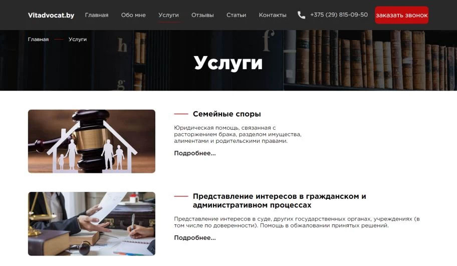 Здесь также могут быть формы для обратной связи и заявок, записи на консультацию, а также ссылки на оплату услуг.